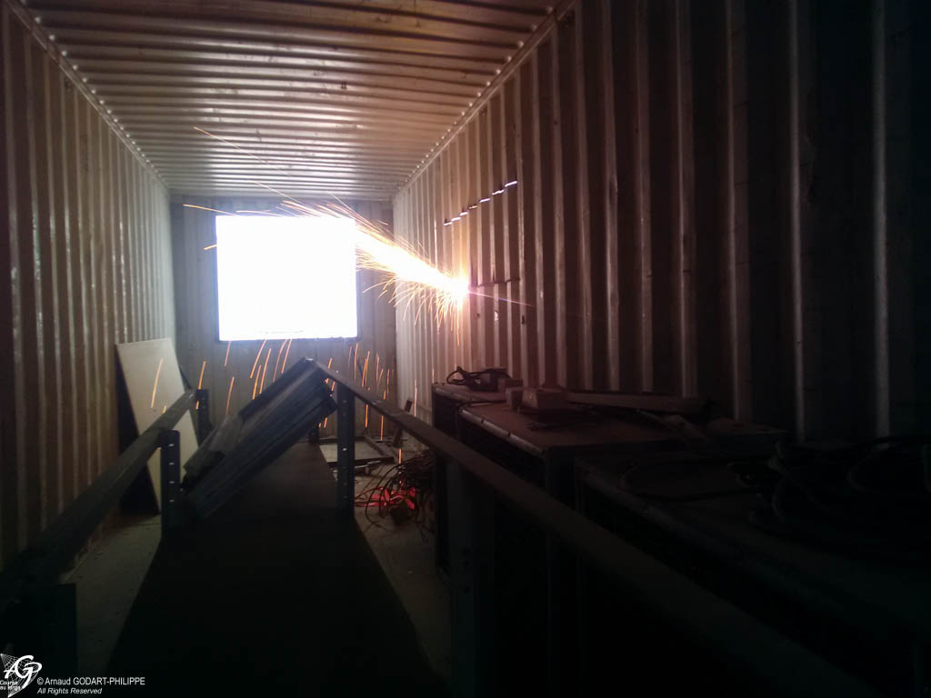 - métallerie : découpe des ouvertures, changement des parties endommagées des conteneurs, soudure des renforts des ouverture, soudures des fixations et aménagements intérieur