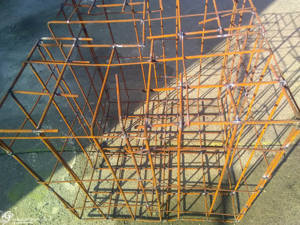 La construction du chantier a débuté en septembre 2019 après 6 mois d'études, avec la construction de la charpente métallique du chantier. Le débit et l'assemblage ont été effectués par nos soins dans notre atelier de ferronnerie spécialement aménagé pour l'occasion. 3 semaines ont été nécessaires pour la découpe, les perçages, la soudure des éléments et le contrôle des dimensions finies.